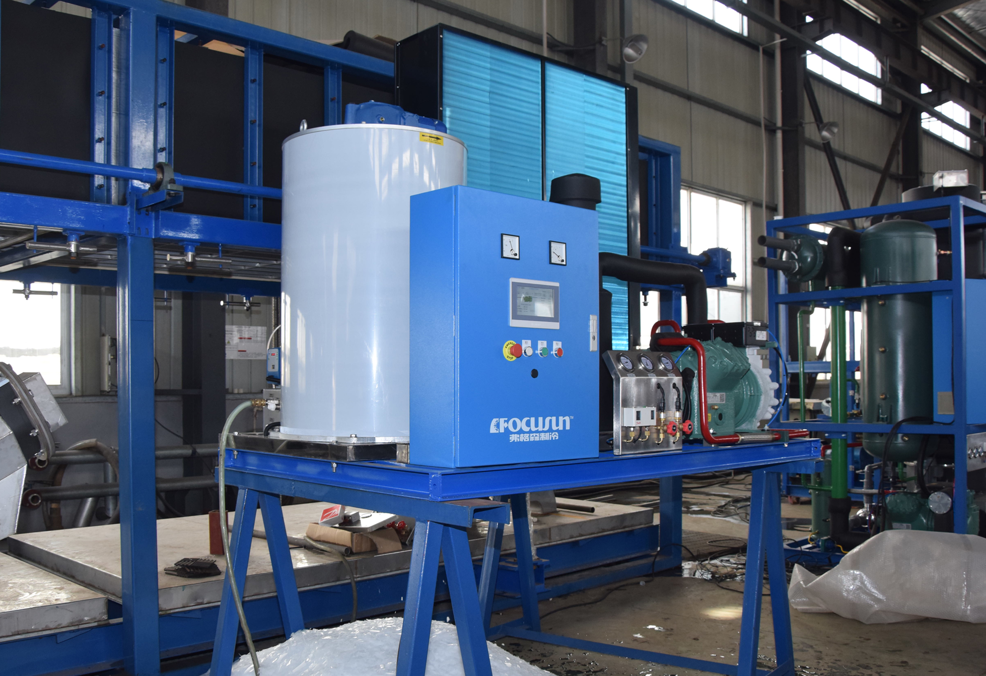 We don’t just sell ice machines—we build solutions that work in the rough-and-tumble of concrete plants. Our integrated flake ice systems check all the boxes: high capacity (up to 100 tons of ice per day), automated delivery that works with your existing batching setup, tough construction that handles dust, heat, and heavy use, and energy-efficient operation that keeps maintenance low. It’s designed to fit how you already work—no extra hassle.